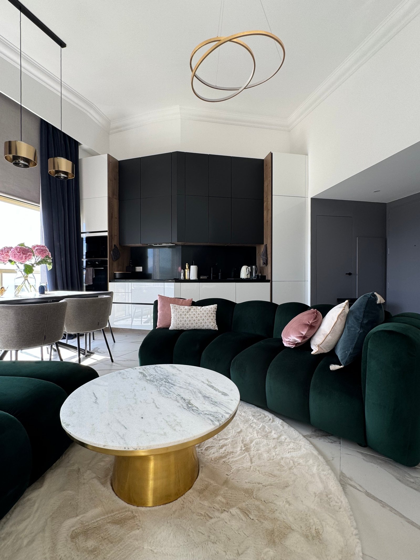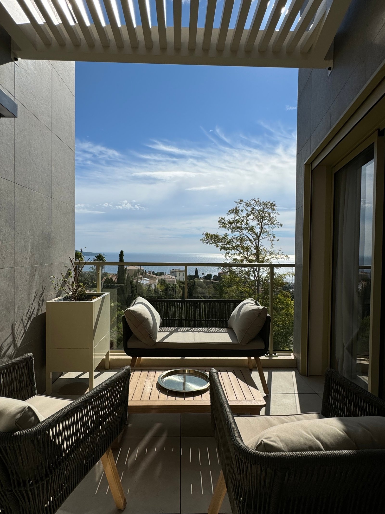 A new 4-room apartment in a gated “Blue Pearl” community, located in the leafy area of Fabron.