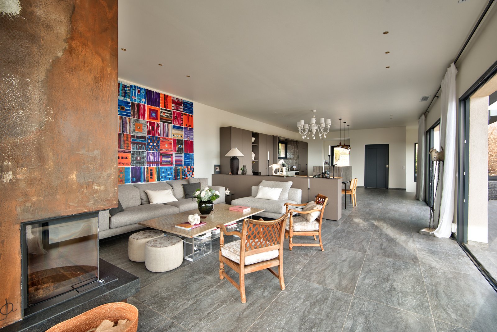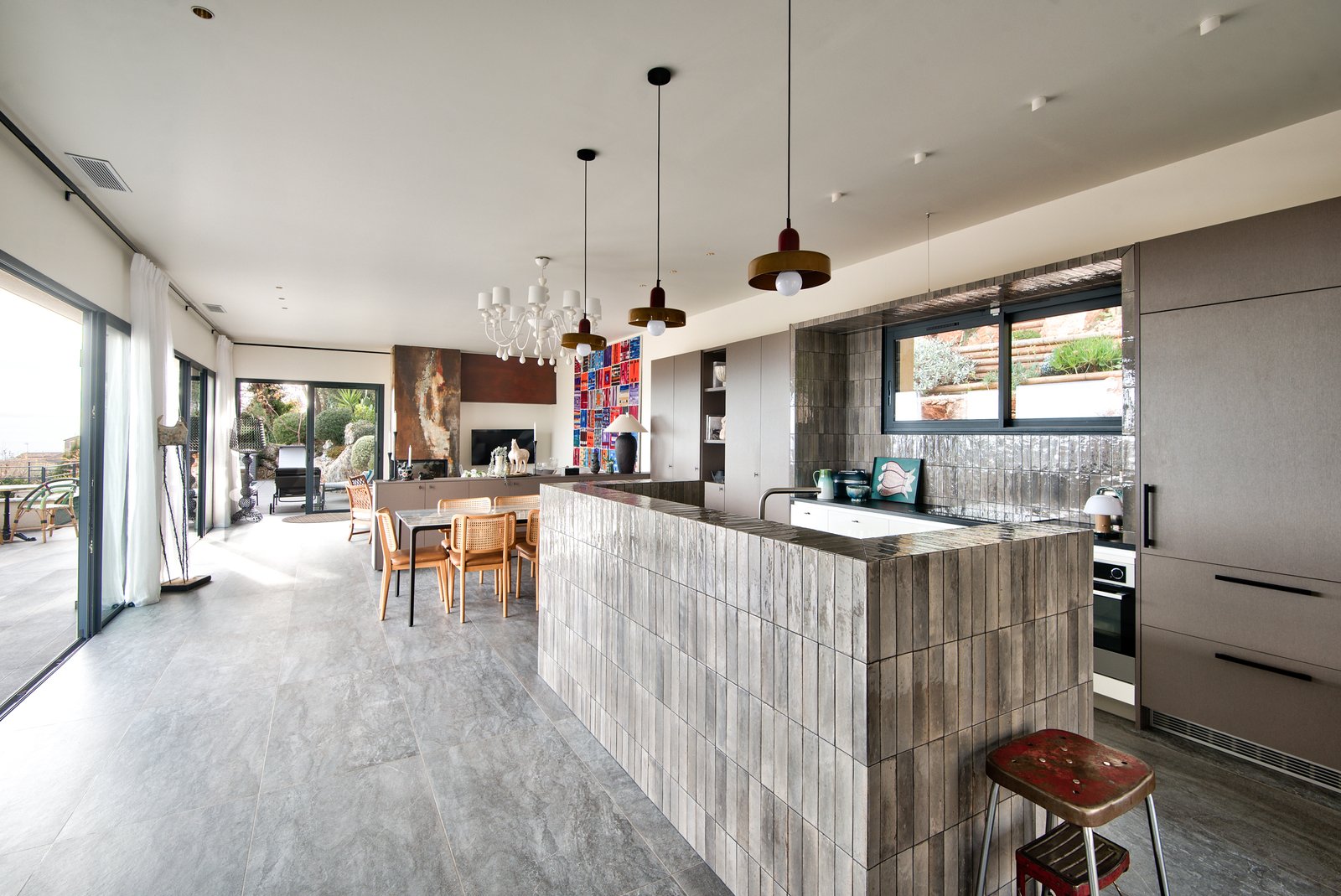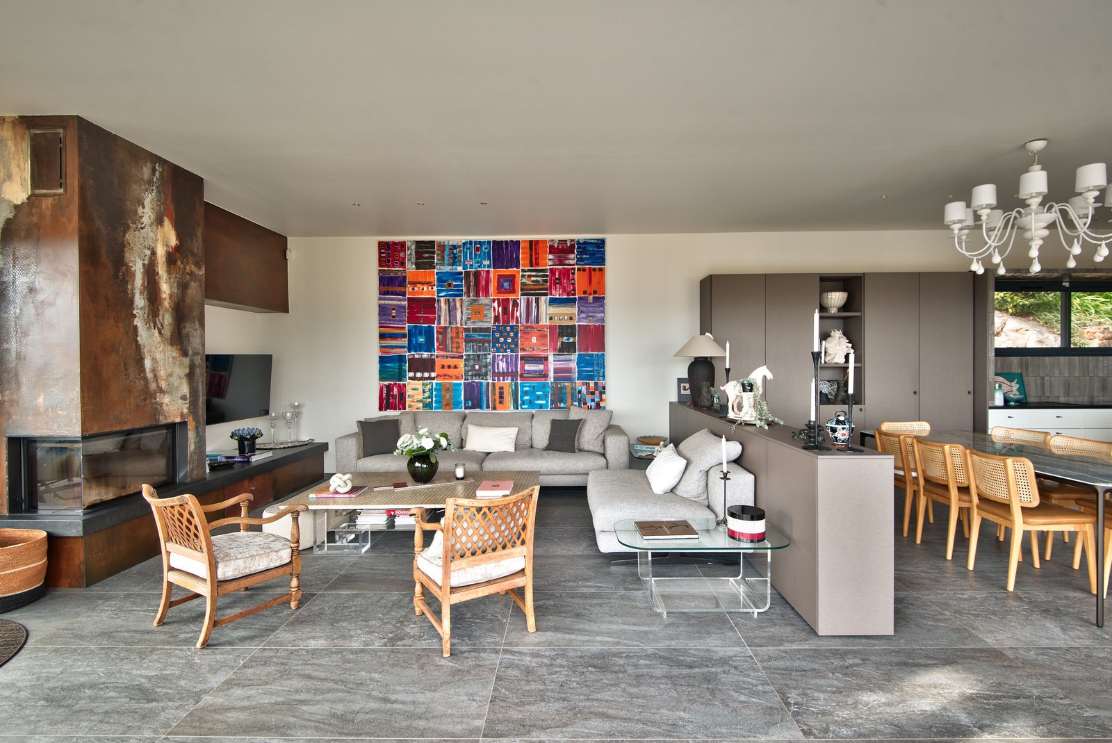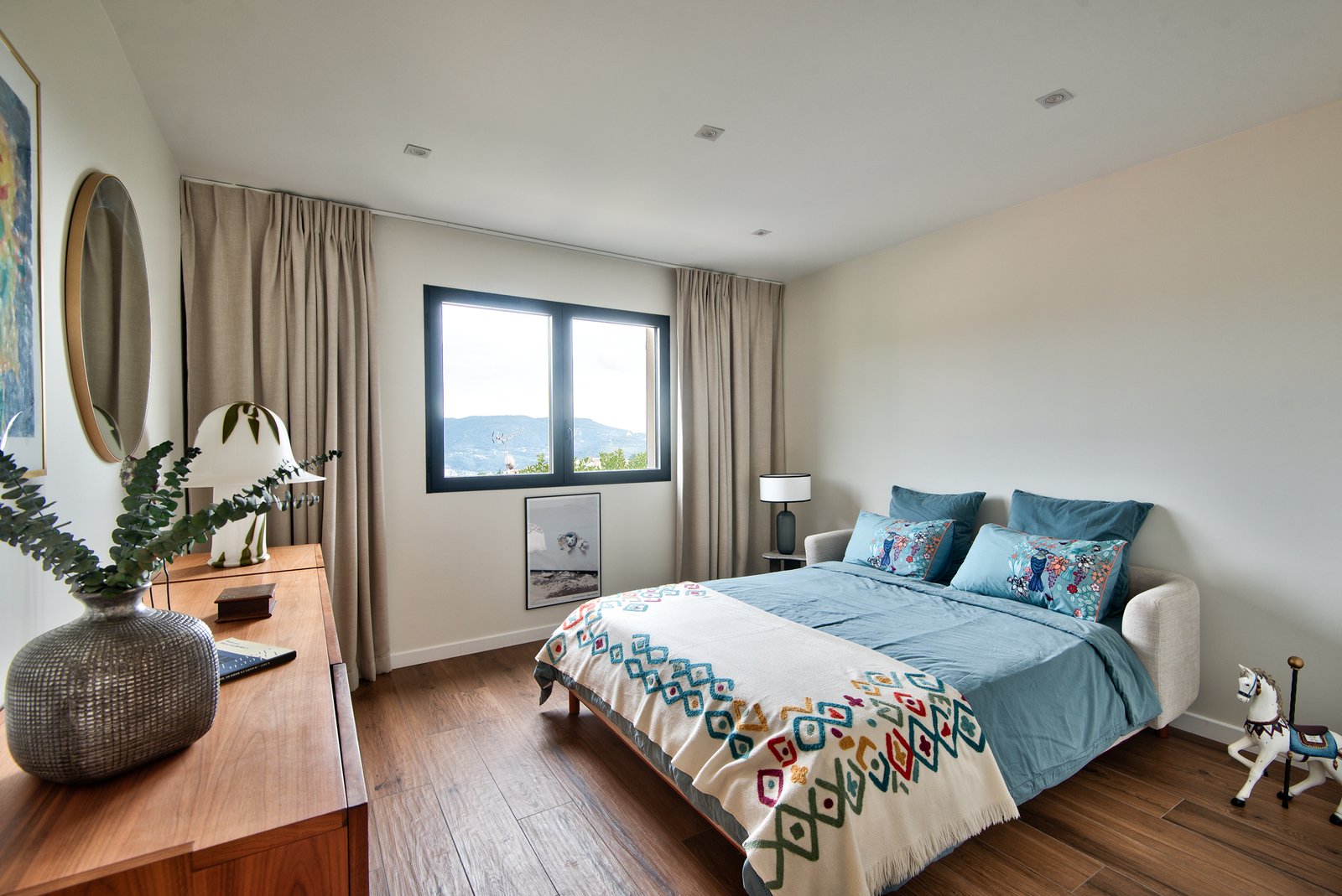 The top floor consists of a superb living room of nearly 75 m², very bright thanks to its triple exposure. The large living room with fireplace opens onto a fitted and equipped kitchen, all opening onto a magnificent terrace of 41 m² and the swimming pool offering an exceptional panorama.