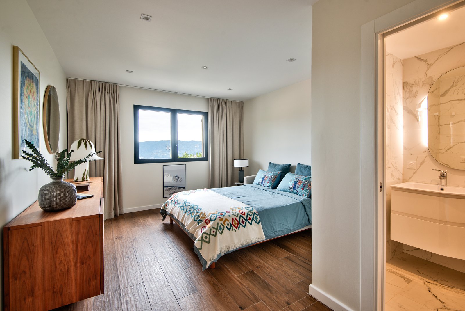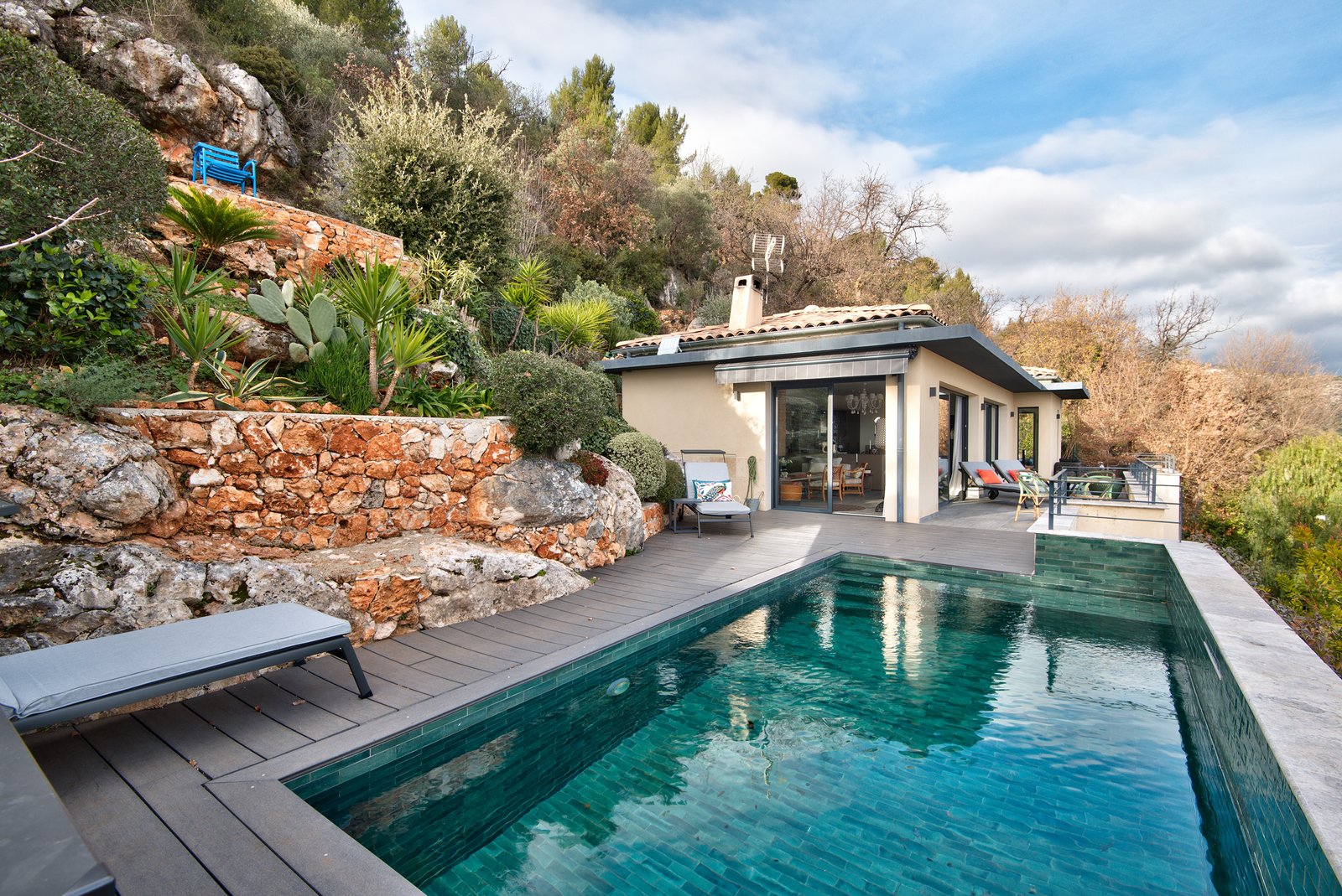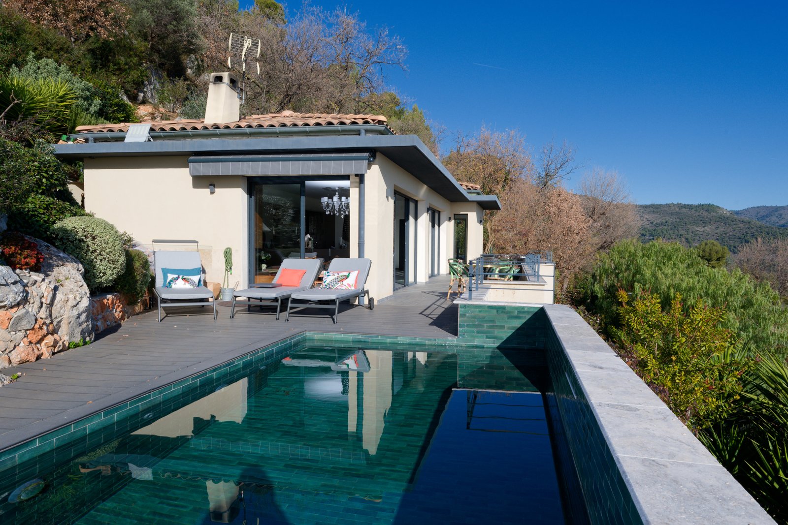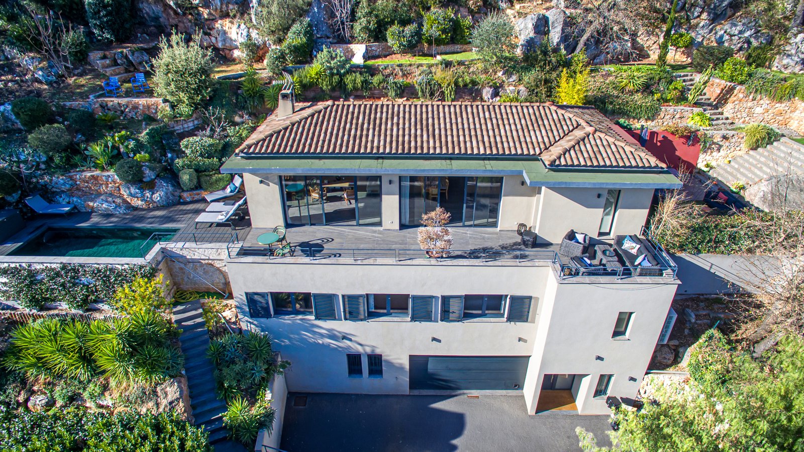 Falicon – Nestled in a privileged environment, in a dominant position, this contemporary villa of 192 m² will seduce you with its neat architecture, its generous volumes and its breathtaking panoramic view of the sea and the surrounding hills.