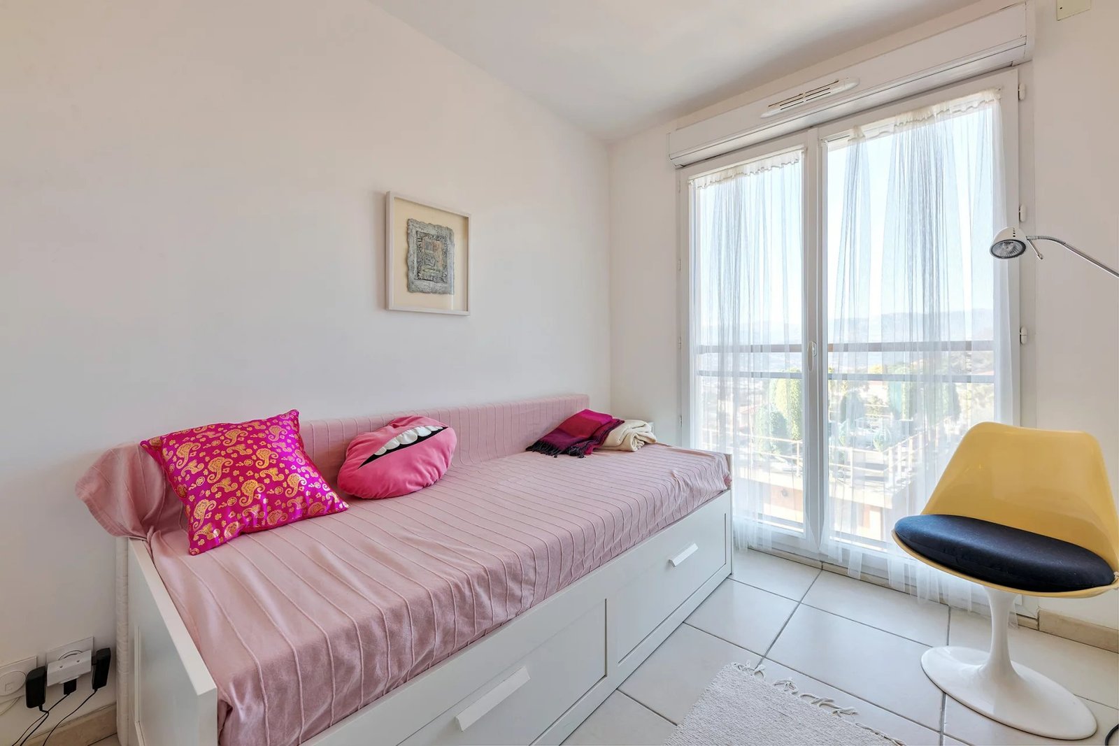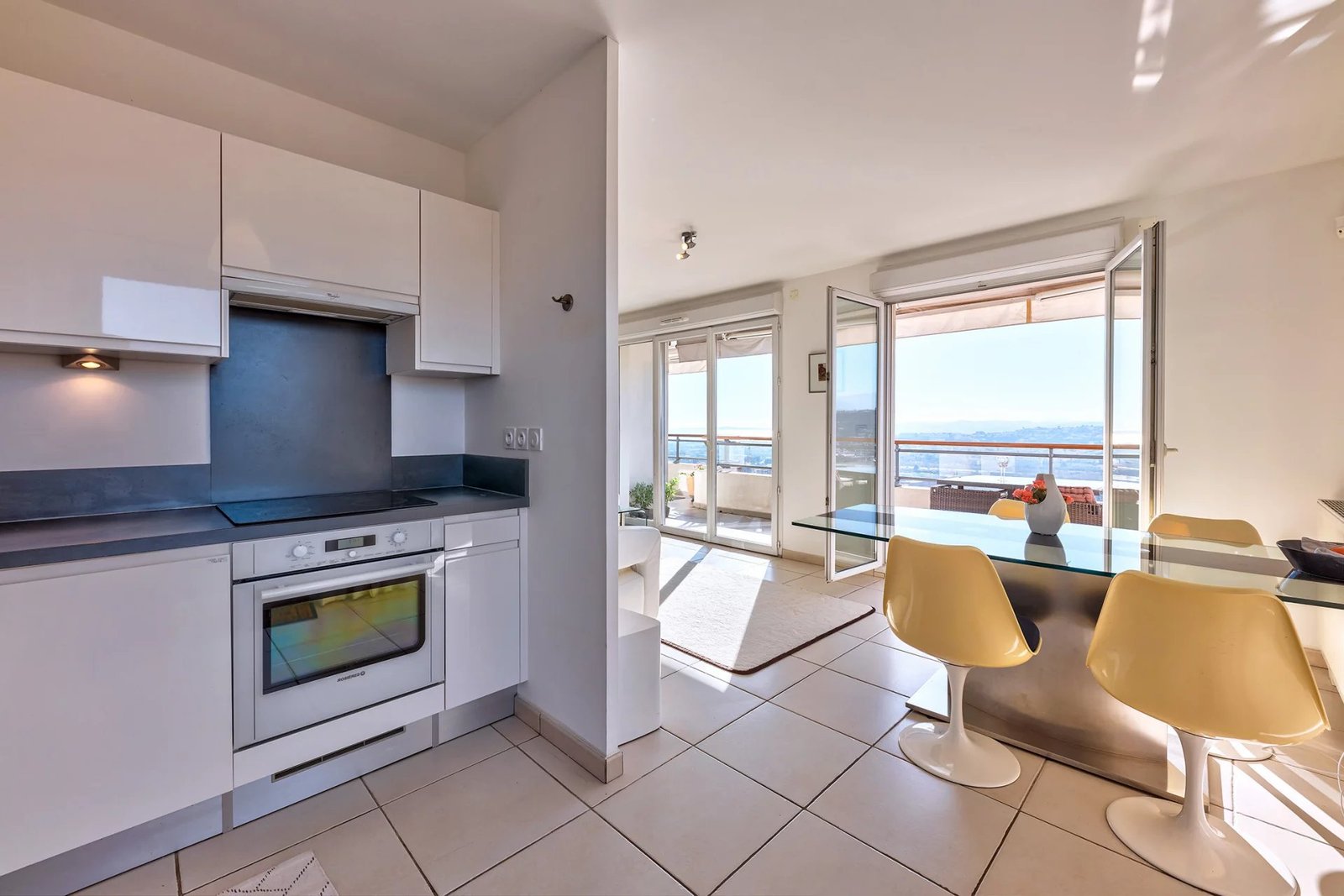 Located in a quiet residential area, just a 10-minute drive from the Promenade, this 78.75 m² top floor apartment offers stunning 180° views. It consists of an entrance, a living room/kitchen, a spacious terrace, 3 bedrooms, a bathroom, a shower room and a toilet. The residence is secure, offering a peaceful living environment.