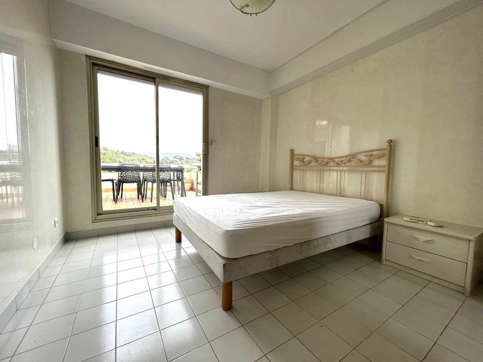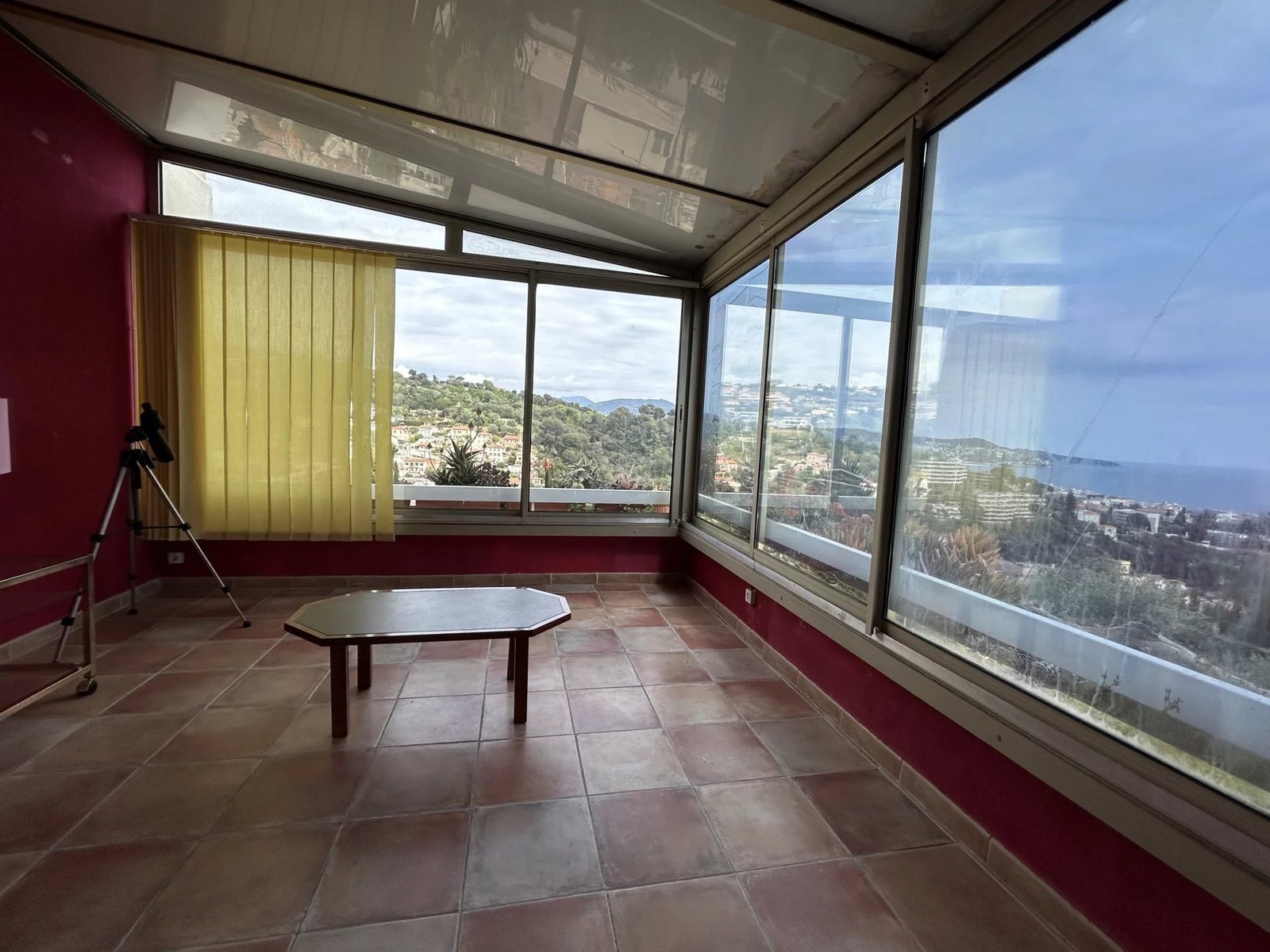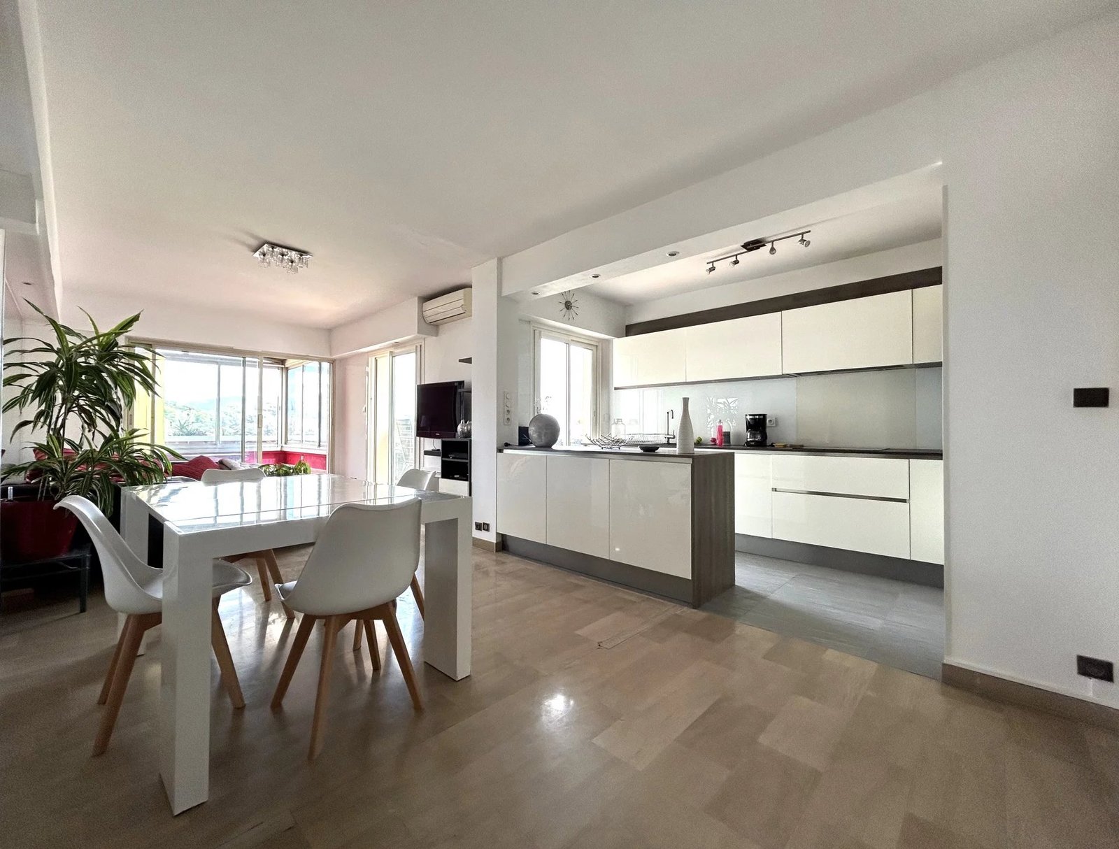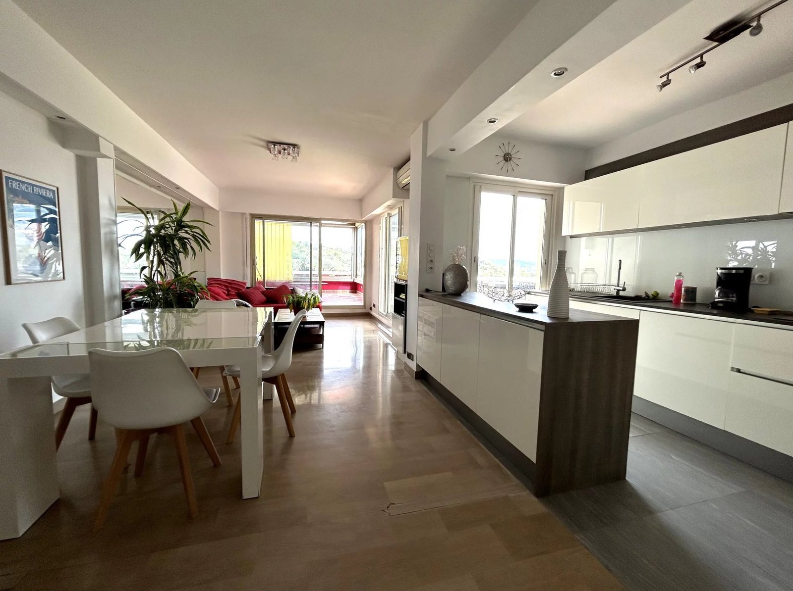 The apartment is composed of an entrance hall, a living room with veranda of 11 m² and open fitted kitchen, three bedrooms, a bathroom with toilet, a shower room, a dressing room and a separate toilet. The property also has a 14m² terrace accessible from the living room, the kitchen and one of the bedrooms offering a magnificent panoramic view of the sea and the hills.Fully air-conditioned apartment, quiet and not overlooked.A garage and a cellar complete the property. Possibility of acquiring a second garage in addition in the condominium.