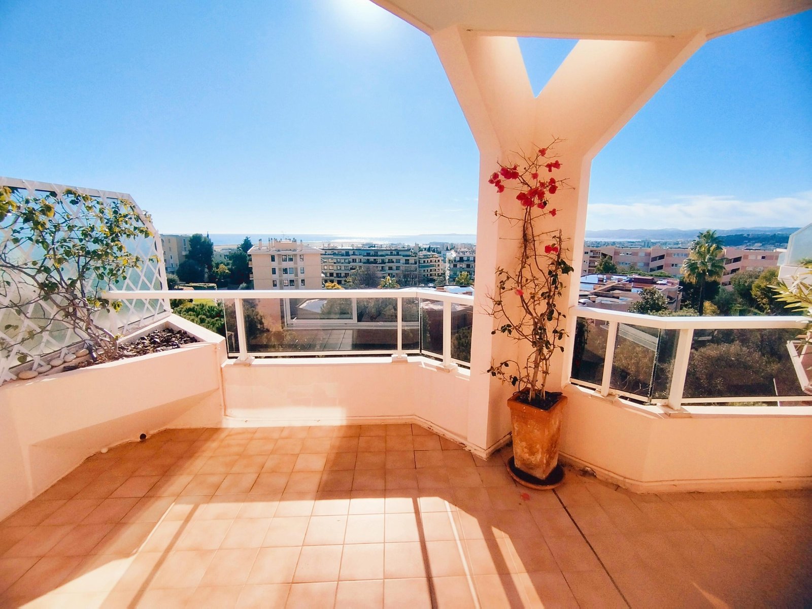 Beautiful distribution for this apartment including a living room of 28 m² and a fitted kitchen of 9 m², the two rooms giving access to a beautiful terrace facing the sea and the Cap d’Antibes. At the back of the apartment, the air-conditioned sleeping area, well separated from the day area, has a vestibule that leads to two beautiful bedrooms of 11.5 m² with wardrobe for each. Shower room with WC and a second separate WC.