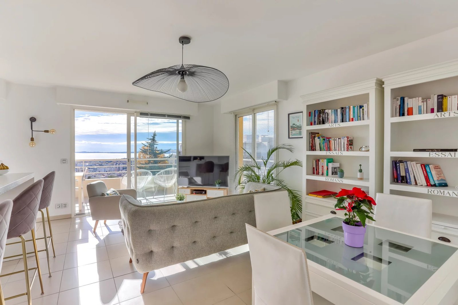 Nice West / LANTERNE – 3 ROOMS TERRACE WITH SEA VIEW LANTERN – Superb 3 room apartment of 74 m² with terrace of 22 m² with sea view, swimming pool and closed box. Located on the 1st floor of a recent residence, this magnificent 3-room apartment of 74 m² furnished offers a privileged living environment, sublimated by a terrace of 22 m² with sea view. It consists of an entrance hall leading to a bright living room with fully equipped open kitchen, all benefiting from a south-west exposure guaranteeing a beautiful light throughout the day. The night area includes two bedrooms with built-in storage, a shower room, and a separate toilet. For optimal comfort, the apartment is equipped with reversible ducted air conditioning. The residence, quiet and well maintained, has a swimming pool and the apartment is sold with a closed box, a real asset in the area. A rare property, with quality services, ideal for a primary or secondary residence. To be discovered without delay! Annual charges 260euros/month heating included – No procedure in progress. Information on the risks to which this property is exposed is available on the Géorisques website: ‘georisques.gouv.fr’.