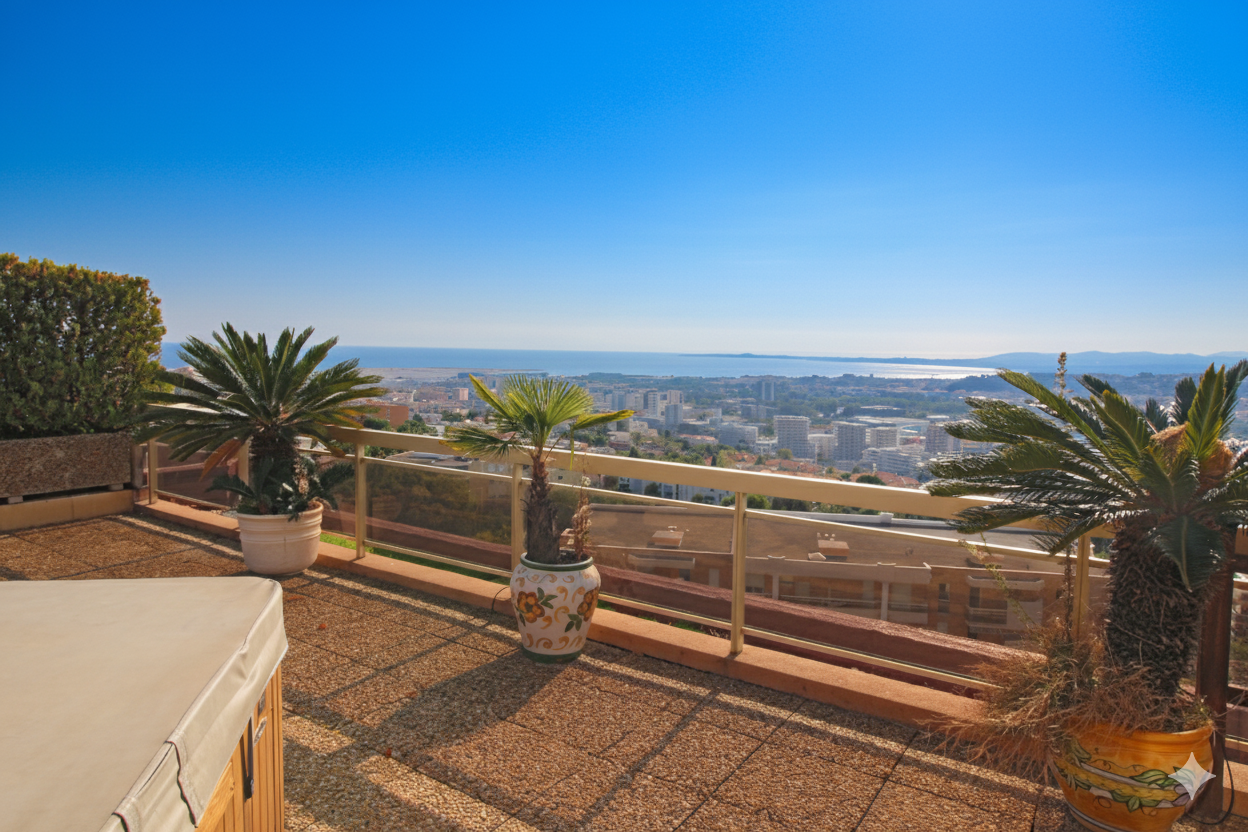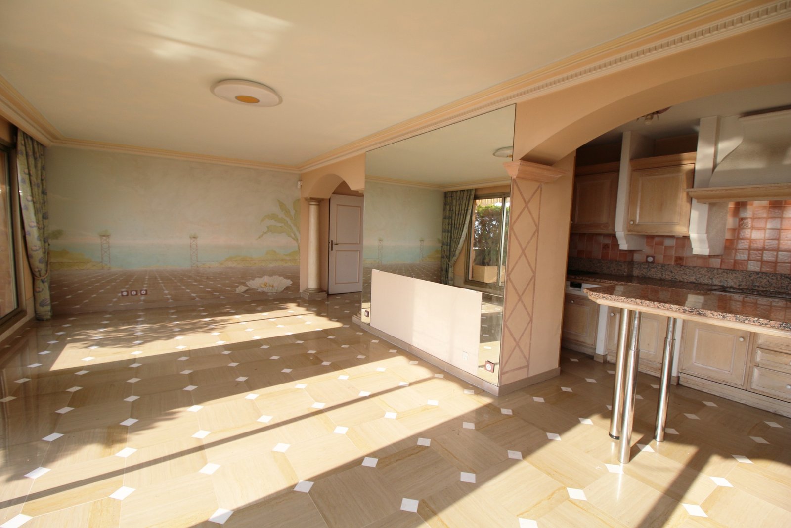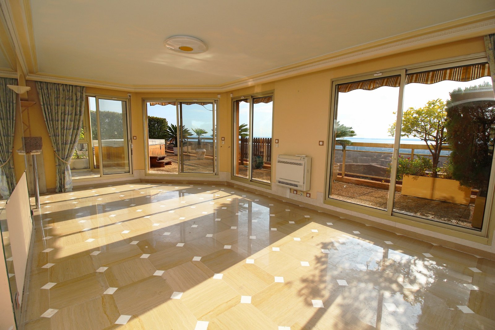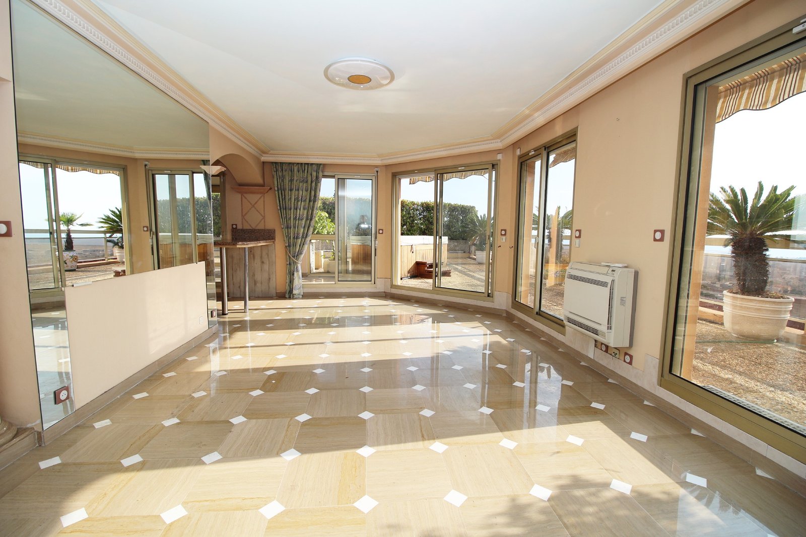 Located in a quiet area set back from the road on Nice West, discover this top floor apartment bathed in light thanks to its main South-West exposure, it offers a breathtaking PANORAMIC SEA VIEW, which you will enjoy from an exceptional terrace and balcony of about 116 m². This 4-room apartment with a total surface area of 117 m² (100.93m² Carrez Law), consists of a bright living space totaling with the kitchen and the entrance 44m2 (open kitchen possible because the central wall with the mirror is only a storage and is not load-bearing), 3 bedrooms, two shower rooms, two toilets and a veranda. Comfort is provided by reversible air conditioning. The interior needs to be modernized, offering you a superb white canvas to rearrange the volumes and create the attic of your dreams in your image. Bonus: You will benefit from a jacuzzi and a private sauna. The apartment is sold with 2 cellars and 2 essential parking spaces in the area (a garage and a private parking). To complete the package, there is the possibility of acquiring two additional parking spaces in addition to the price. The residence, dating from 1989, is secure and offers a beautiful swimming pool to its residents. The location is ideal, combining the tranquility of a cul-de-sac on the heights while being in the immediate vicinity of practical life: shops (pharmacy, bakery, greengrocer at 61 Corniche Fleurie), schools and bus lines are quickly accessible. A great opportunity for a renovation project with exceptional potential. Current annual charges 4736 euros (i.e. 395 euros per month including cold water, elevator, maintenance, swimming pool, common expenses). The agency’s fees of 5% TTC of the price will be exclusively payable by the buyer for the sum of 38,050 euros TTC, i.e. a price excluding fees of 760,950 euros. Energy class B Climate A.