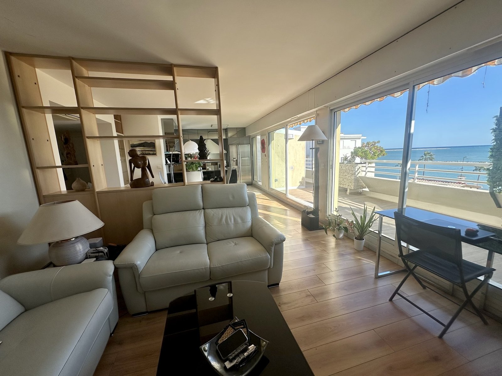 ST LAURENT DU VAR – SEAFRONT – Rare property for sale! Absolutely exceptional location, on the front line facing the sea, discover this rare property for sale. Superb apartment/villa enjoying a privileged location and stunning sea views. A real favorite, this bright apartment benefits from a magnificent corner terrace as well as a solarium offering a unique living environment. Close to the seaside, cap 3000, restaurants… All the rooms open to the outside, it consists of a beautiful entrance with custom-made storage, a fully equipped American kitchen open to a spacious double living room, a large en-suite bedroom with shower room and dressing room. Air-conditioned apartment convertible into 3 rooms. In an intimate and well-kept condominium. Its exceptional features, its configuration and its beachfront location, this property is a unique opportunity in the area. A large garage in the electrified basement completes this property. Possibility of acquiring 2 additional parking spaces. ENERGY EFFICIENCY: c Monthly charges 215 EUR Well in co-ownership