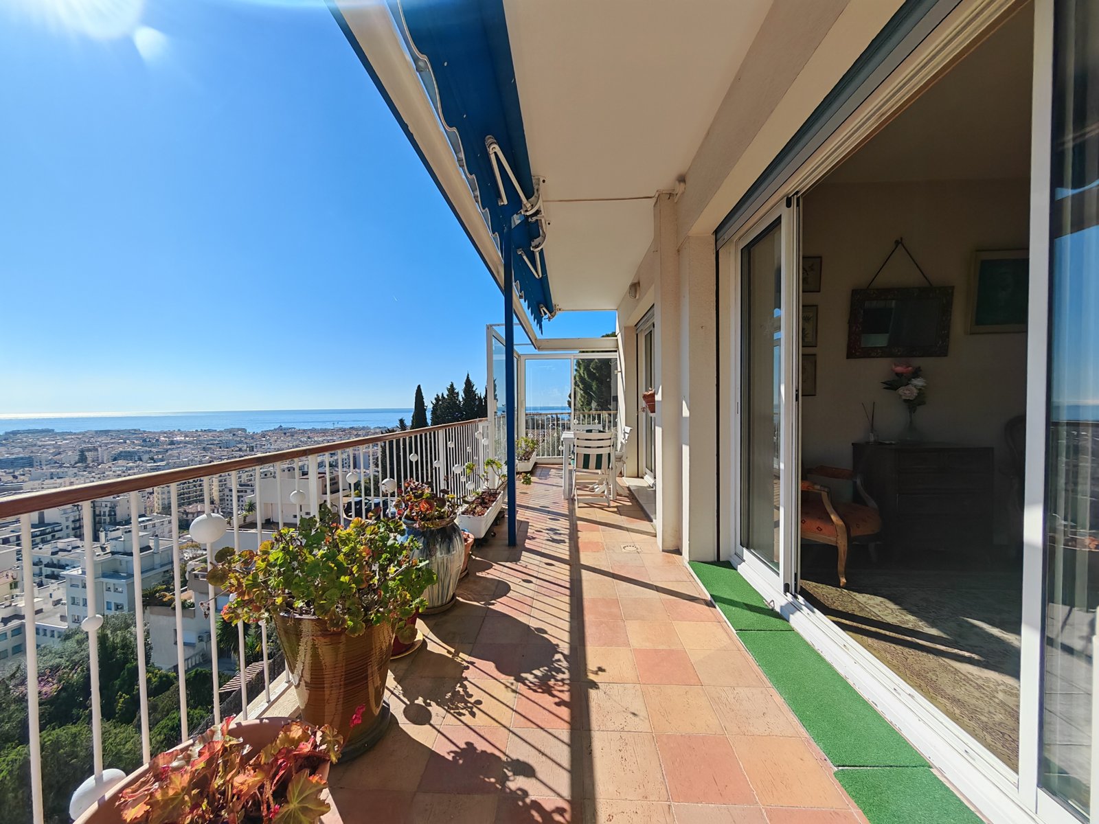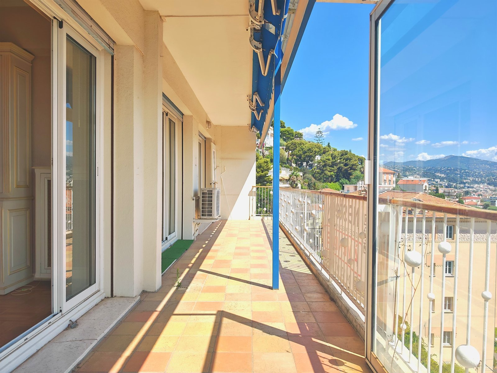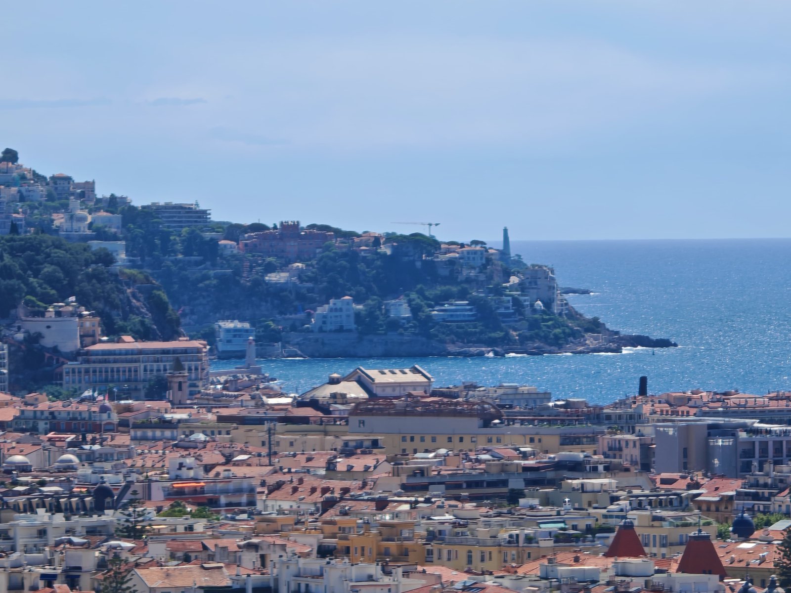 Avenue Primerose, Parc Imperial en avant dernier étage, 3p avec 23 m2 de terrasse, vue exceptionnelle panoramique, depuis les montagnes enneigées jusqu’à la Baie des Anges et surplombant la Cathédrale St Nicolas, merveille Orthodoxe de Nice.