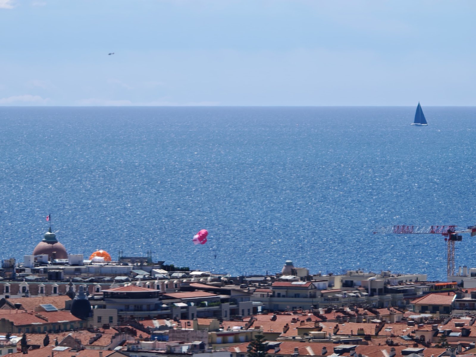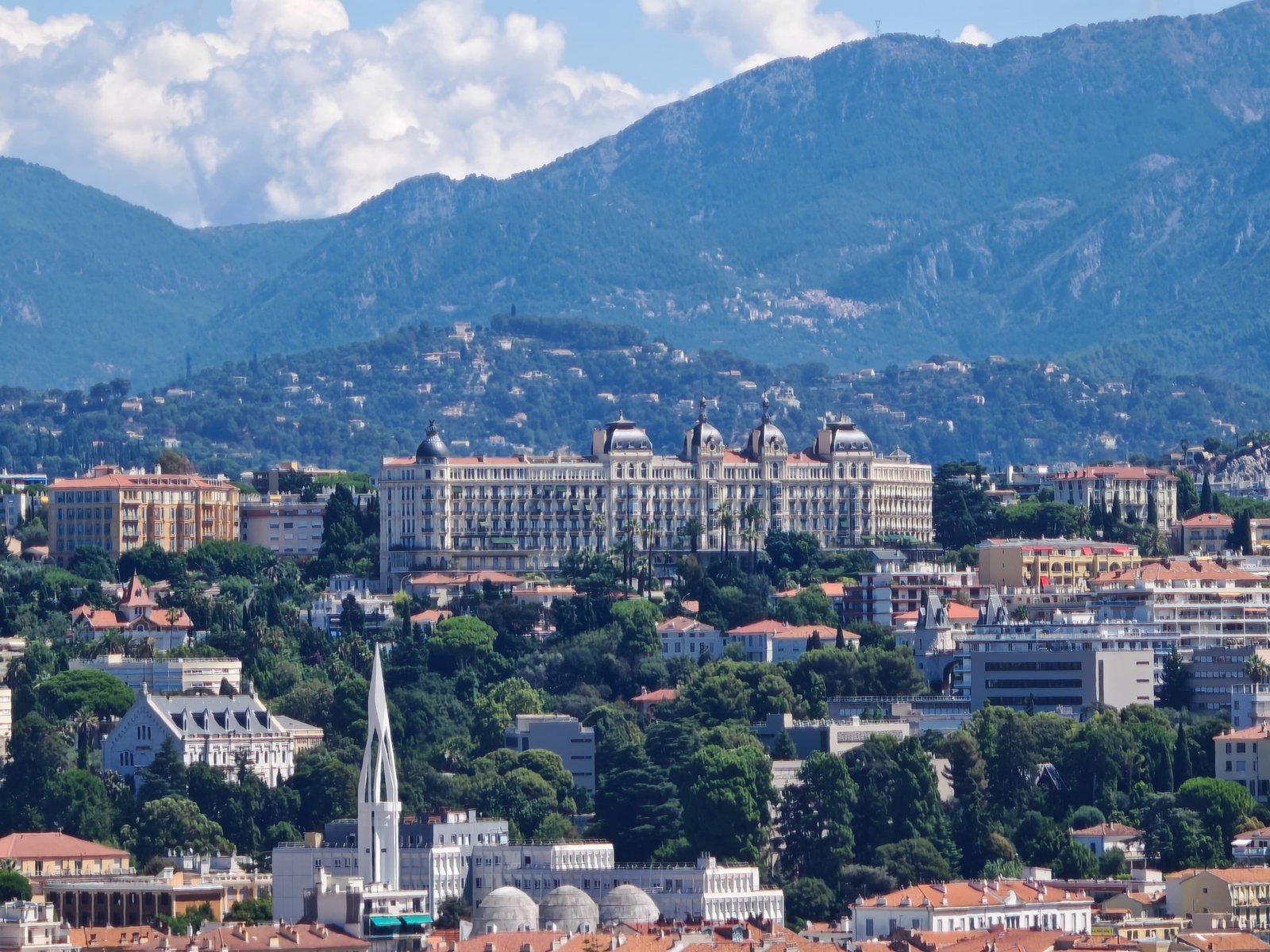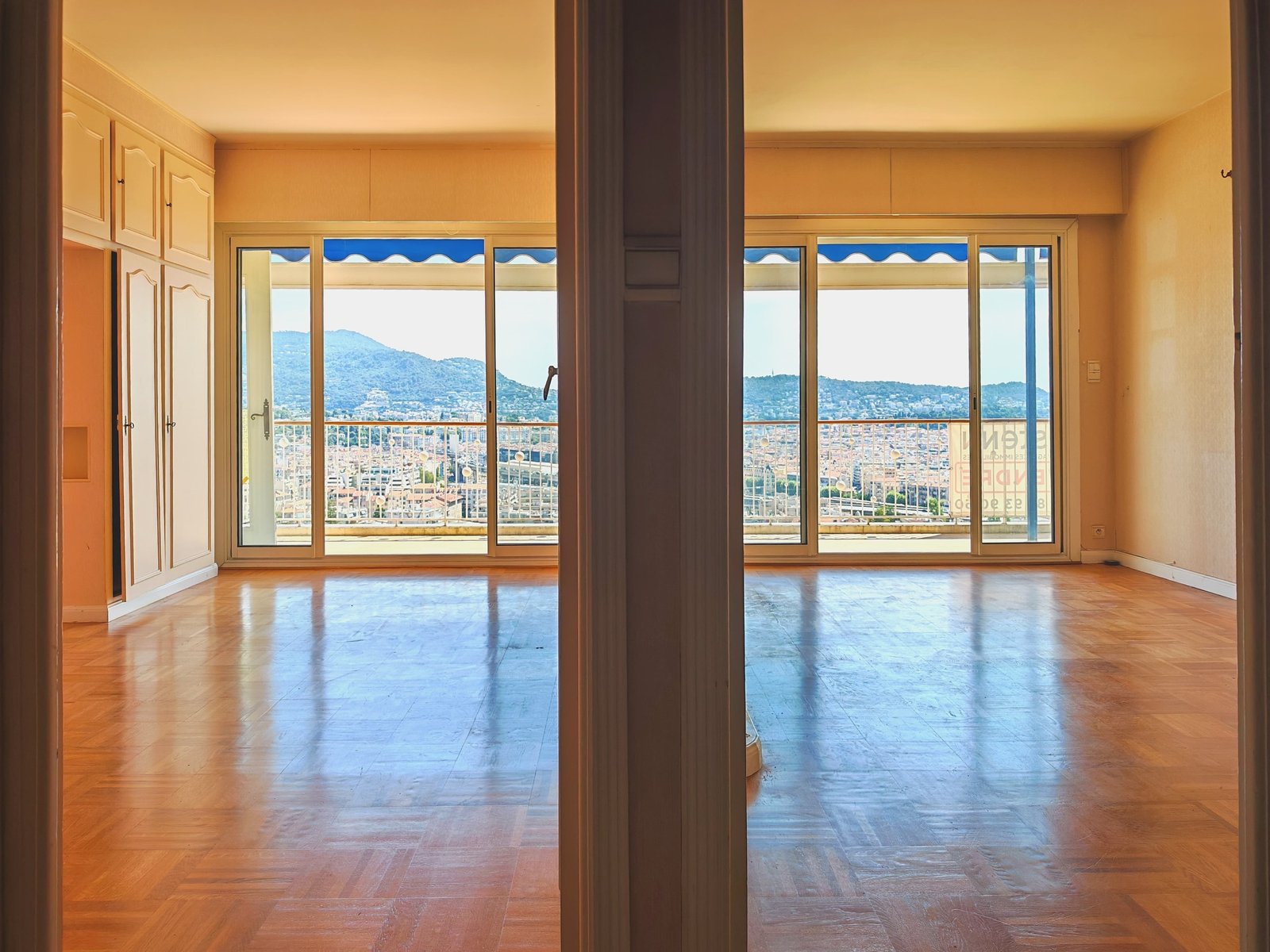 Avenue Primerose, Parc Imperial en avant dernier étage, 3p avec 23 m2 de terrasse, vue exceptionnelle panoramique, depuis les montagnes enneigées jusqu’à la Baie des Anges et surplombant la Cathédrale St Nicolas, merveille Orthodoxe de Nice.