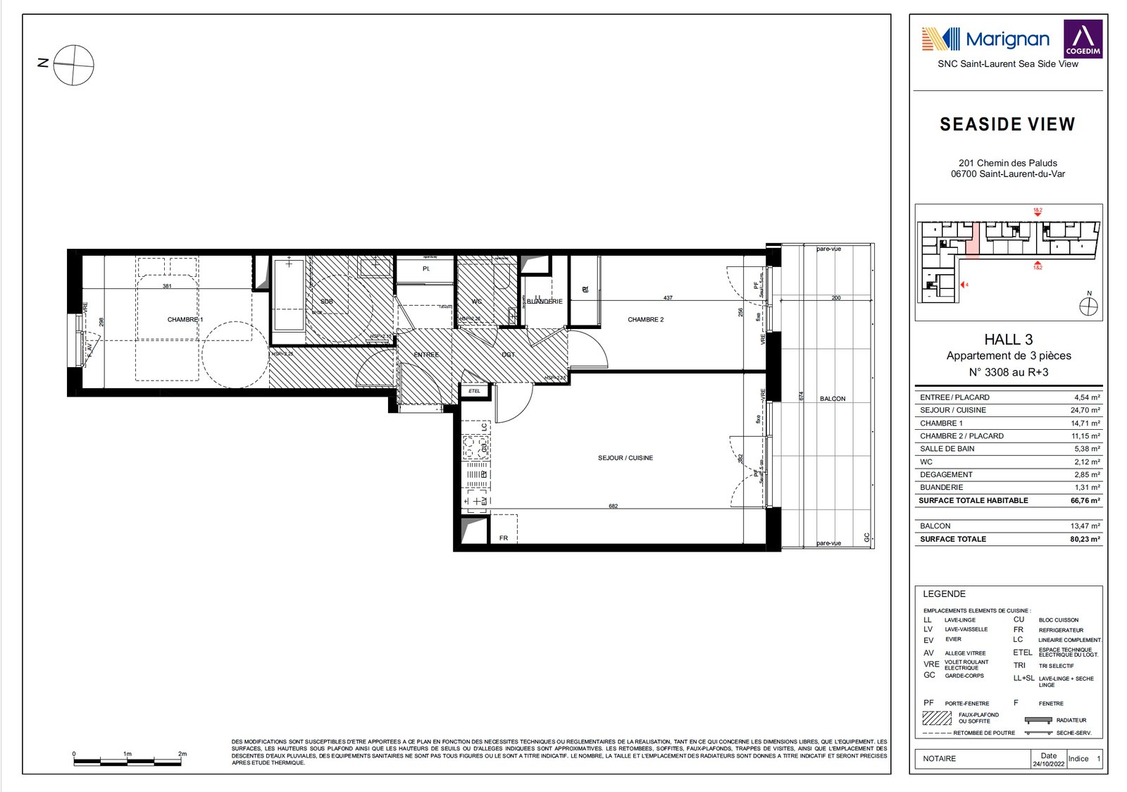 Immeuble neuf Sea Side View St Laurent Au 3ᵉ étage d’une résidence neuve de 7 étages, superbe appartement traversant de 3 pièces comprenant une entrée avec placard, un séjour avec coin cuisine, deux chambres dont une avec placard, une salle de bains, un WC séparé et une buanderie. Le séjour et une chambre donnent sur une grande terrasse de 13,5 m² avec une belle vue. L’autre chambre donne sur la verdure, au calme. Deux places de parking en sous-sol complètent ce bien.