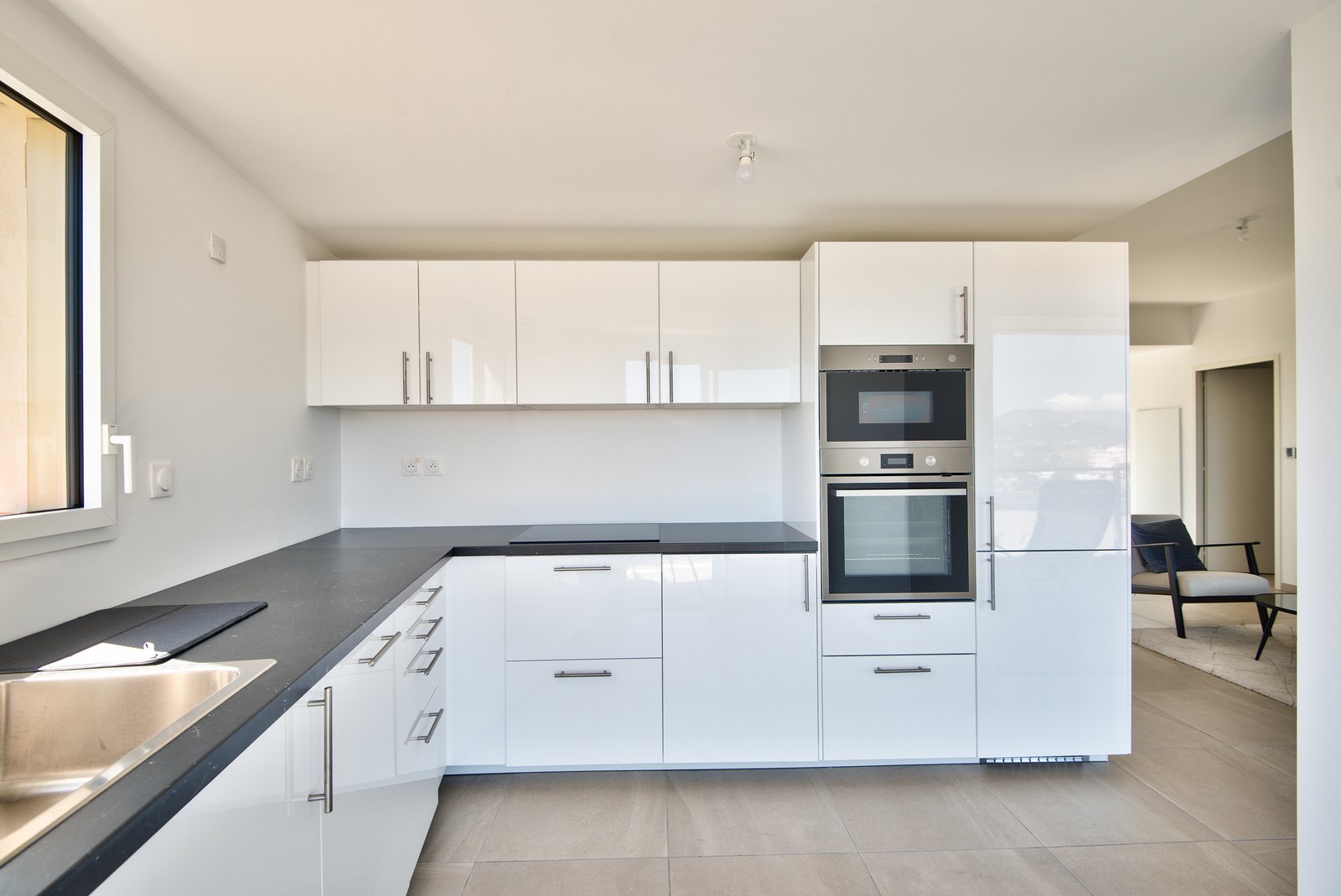 4 PIECES - BELLET Au sein d'une petite copropriété de bon standing situé dans le quartier Ventabrun sur les hauteurs de Nice-Ouest, superbe 4 pièces de 83 m² idéalement agencé. L'appartement est composé d'un hall d'entrée, un séjour avec véranda de 11 m² et cuisine ouverte aménagée, trois chambres, une salle de bains avec WC, une salle de douche, un dressing et un WC indépendant. Le bien dispose également d'une terrasse de 14m² accessible par le séjour, la cuisine et une des chambres offrant une magnifique vue panoramique sur la mer et les collines. Appartement entièrement climatisé, au calme et sans vis à vis. Un garage et une cave complètent le bien. Possibilité d'acquérir un deuxième garage en supplément dans...