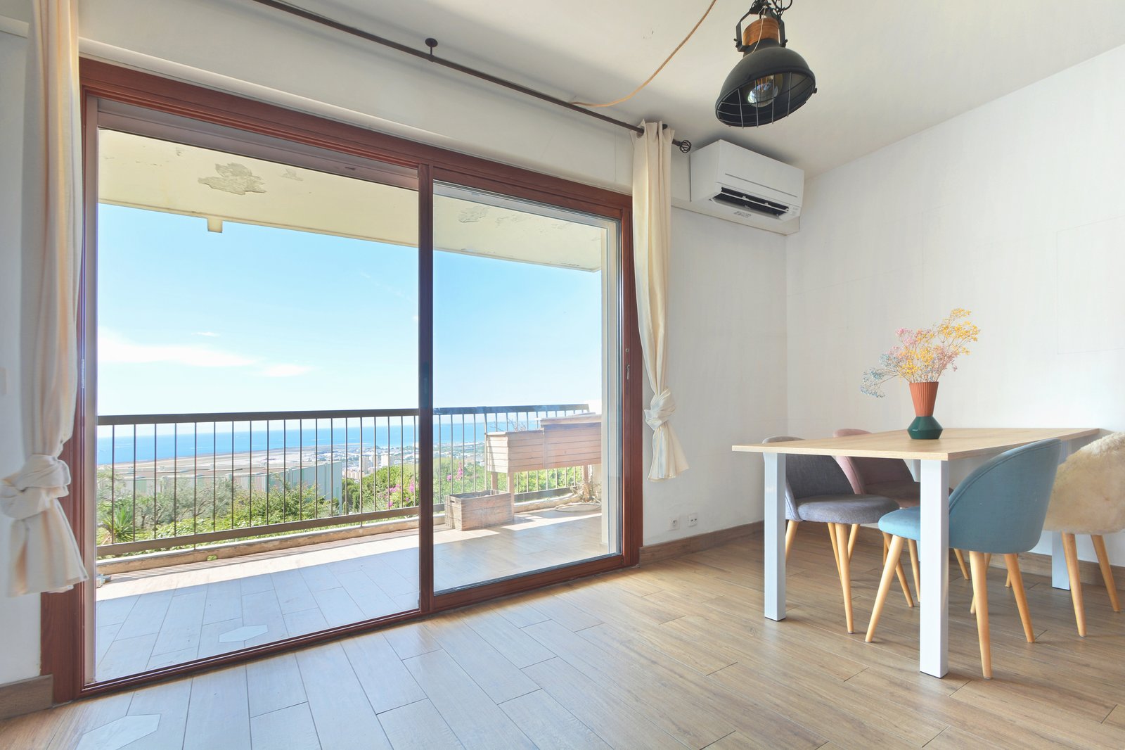 L’appartement est traversant, lumineux et climatisé.