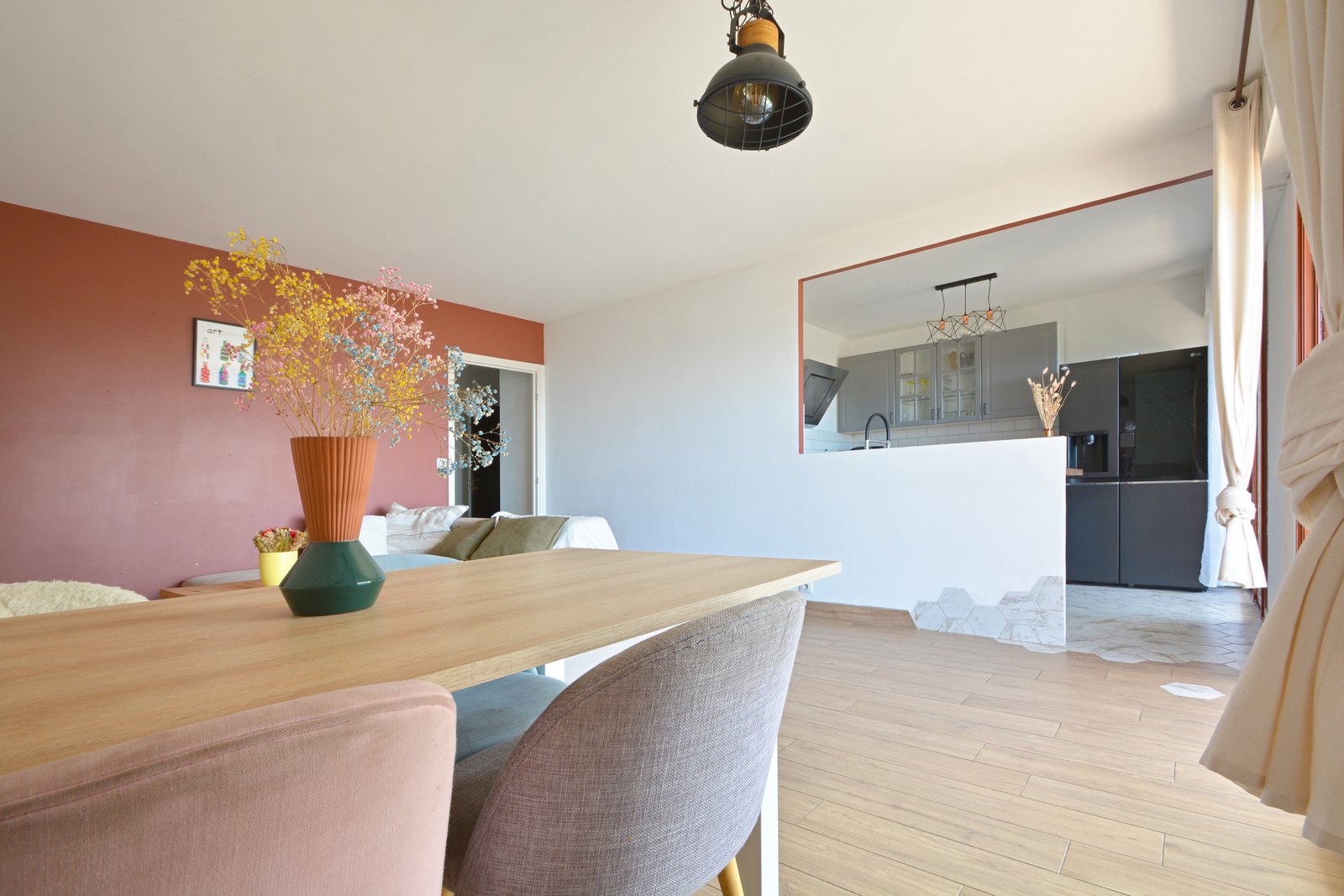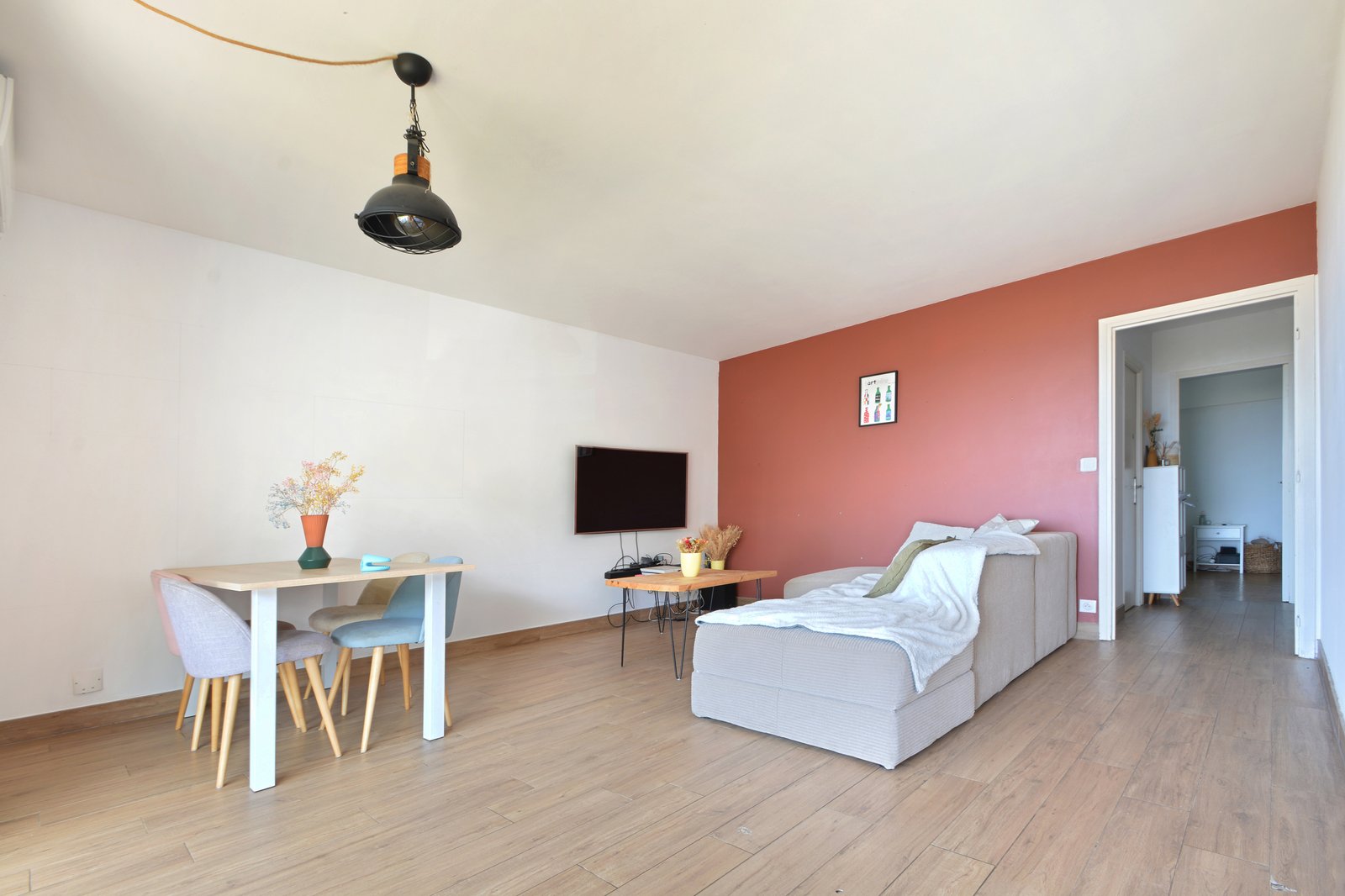 Composé d’une entrée, d’une salle d’eau, d’un wc séparé, de deux chambres et d’un spacieux salon/séjour avec cuisine ouverte.