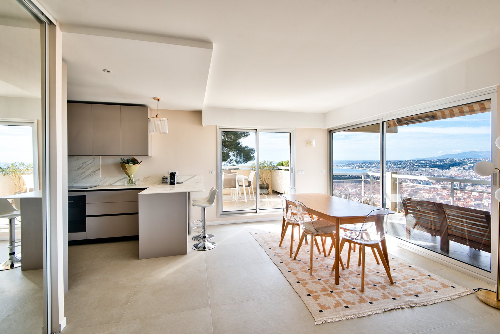 Nice Mont Boron - En dernier étage d'une résidence de standing, découvrez ce superbe appartement 3 pièces de 58,44 m², entièrement rénové avec des prestations soignées et contemporaines. Il comprend un séjour avec cuisine aménagée lumineux s'ouvrant sur une magnifique terrasse de 15 m² et offrant une vue imprenable sur la mer et la Baie des Anges, deux chambres, une salle d'eau et un WC indépendant. Une cave vient compléter ce bien rare, idéal en résidence principale ou secondaire.