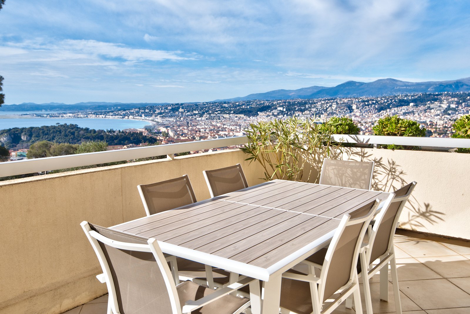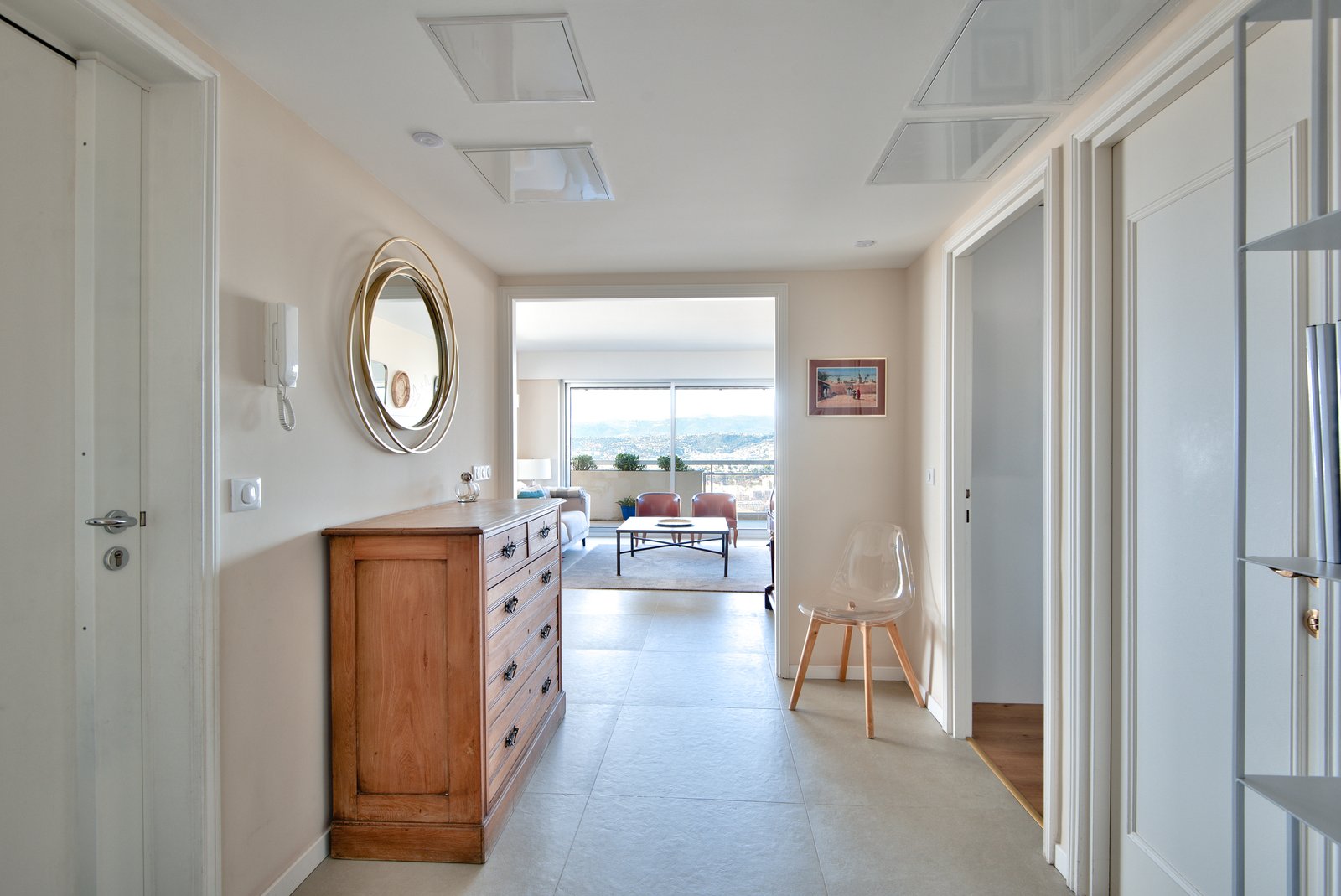 Nice Mont Boron – Appartement 4 pièces de 106 m² situé au 6ᵉ étage d’une résidence de standing. Cet appartement traversant, climatisé et rénové avec goût offre une vue panoramique sur la ville de Nice, la colline du Château et la mer. Idéalement situé, proche du col de Villefranche.