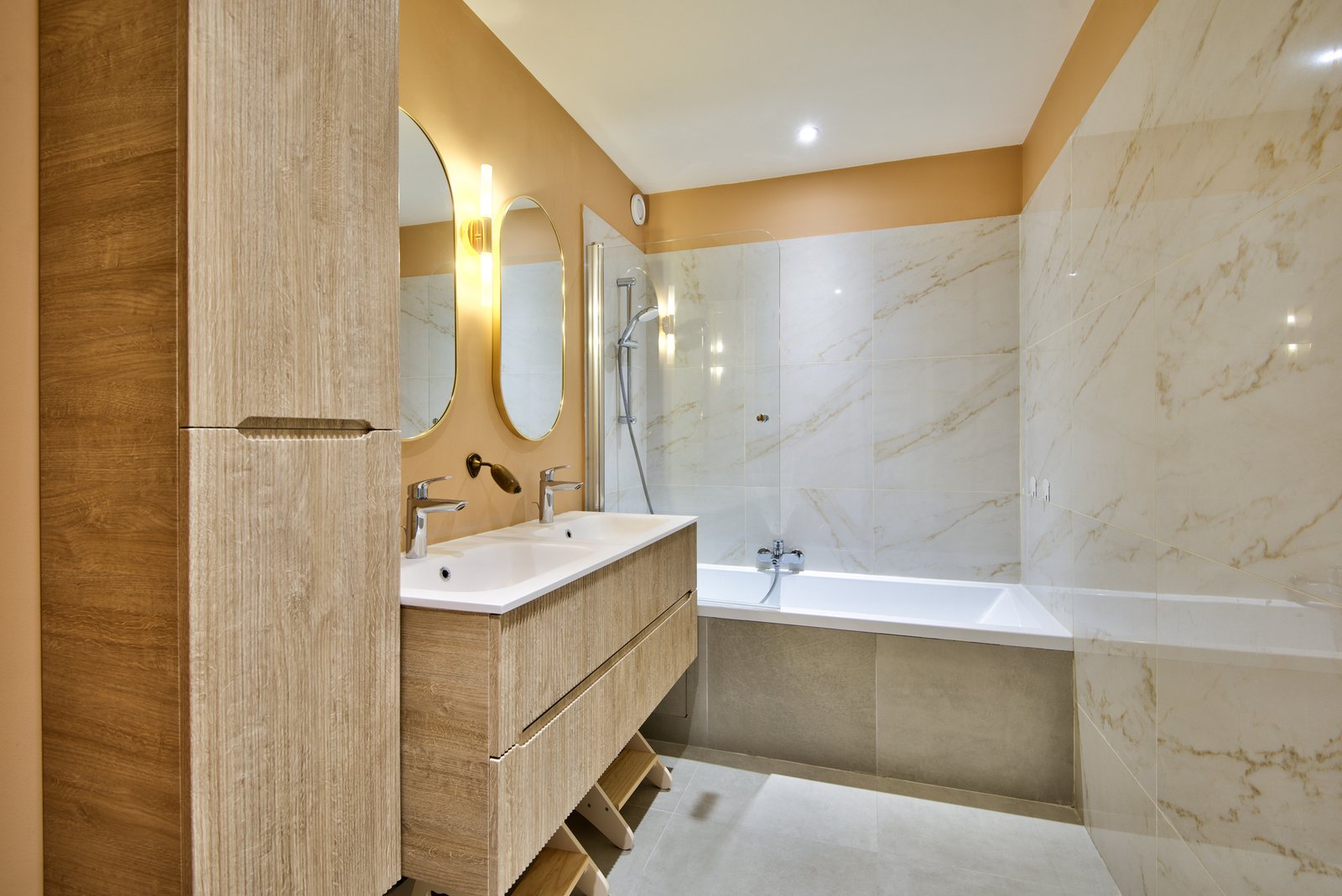 Il se compose d’une entrée, d’un double séjour, d’une cuisine ouverte sur une terrasse de 42 m², d’une chambre principale avec dressing, de deux chambres, d’une salle de bains, d’une salle d’eau, d’un WC indépendant et de nombreux rangements.