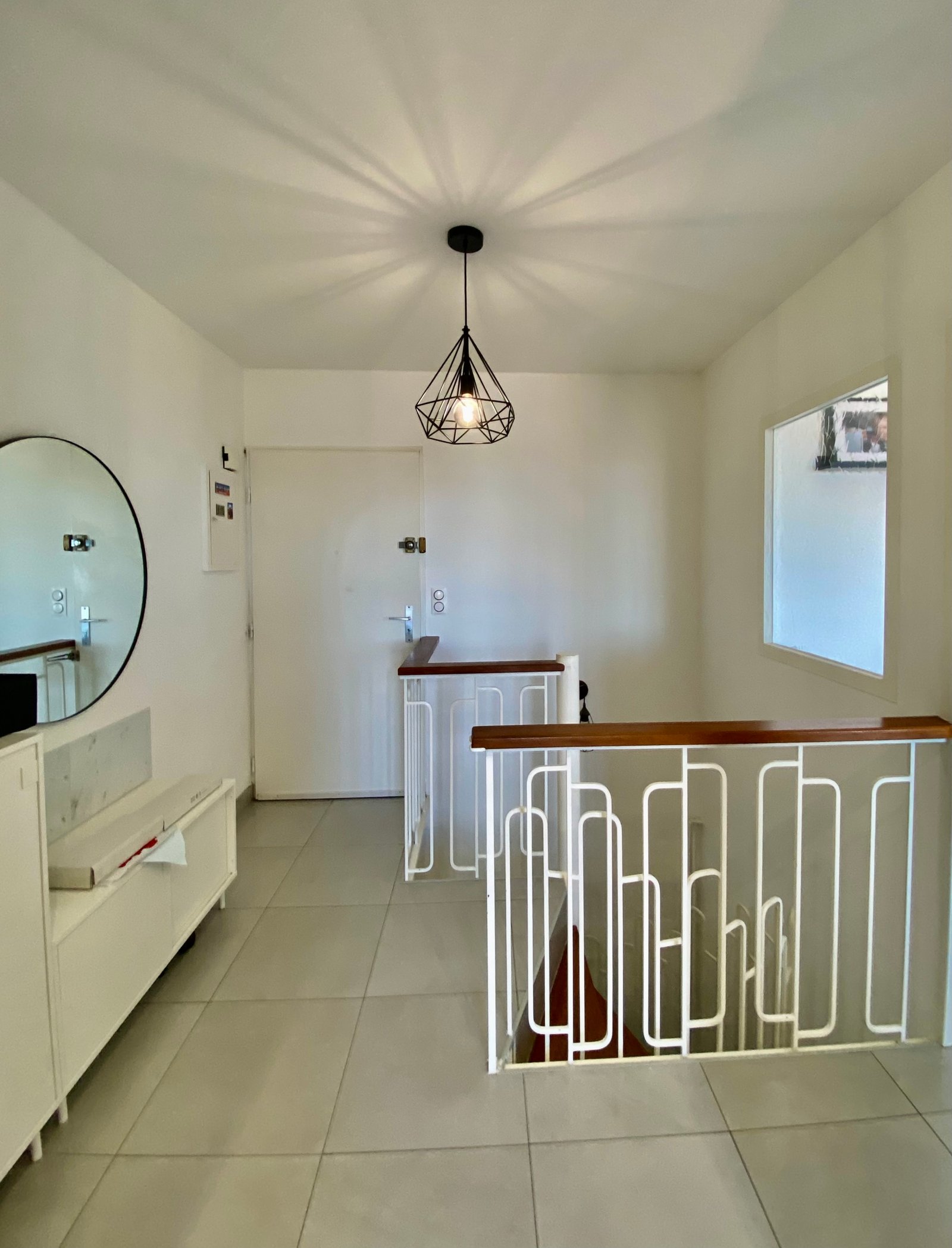 Composé au niveau supérieur d’un double séjour (possibilité 3ème chambre) sur grande terrasse ensoleillée, d’une cuisine équipée ouverte sur l’extérieur et d’une buanderie ainsi que