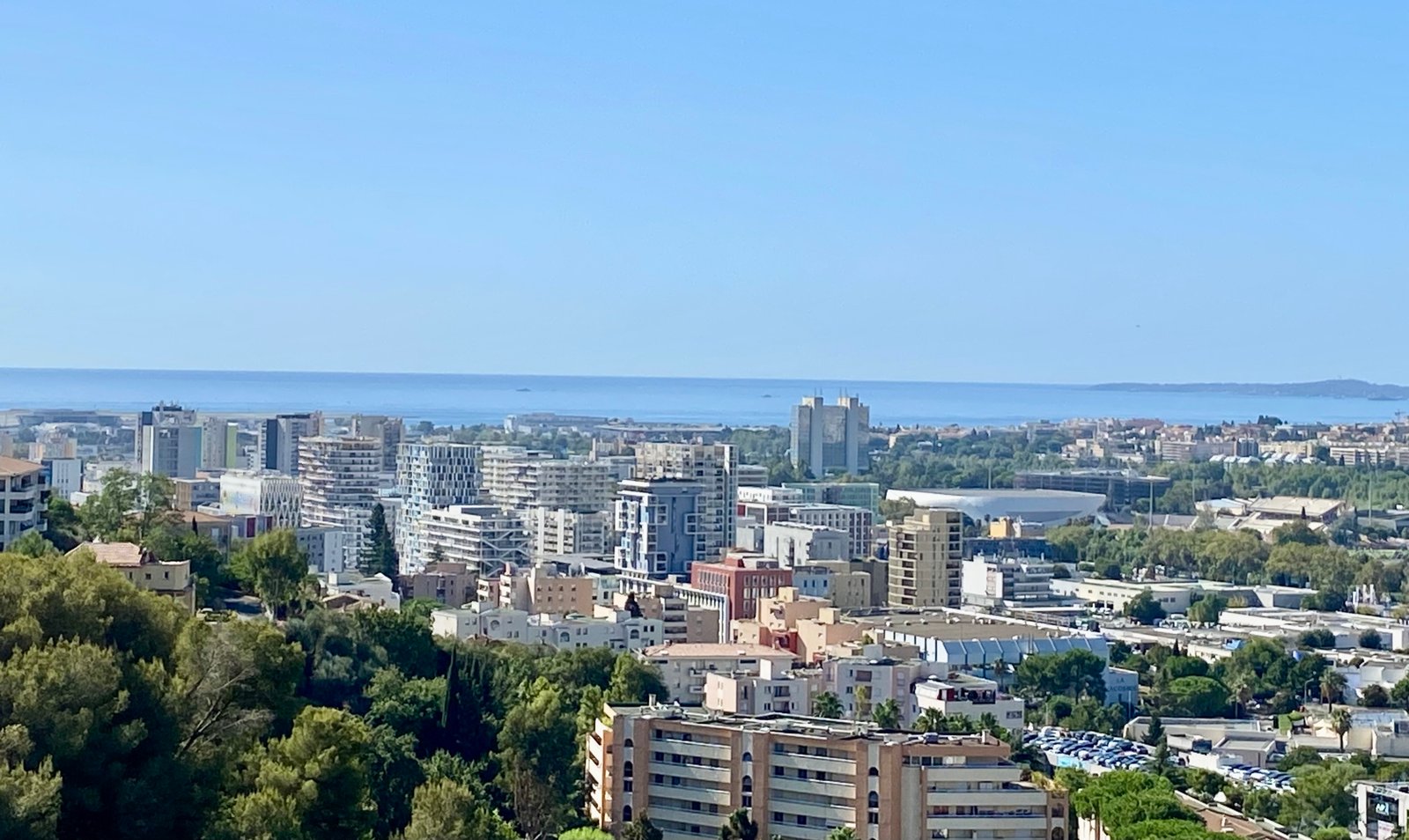Au dernier étage d’une agréable résidence, superbe Duplex en Dernier Etage dominant la ville, avec vue mer et montagnes panoramique.