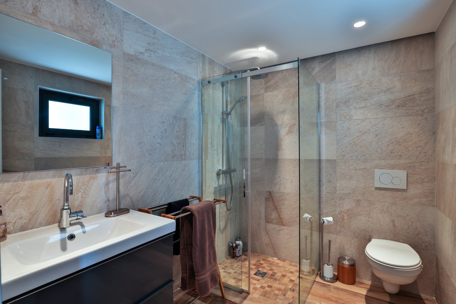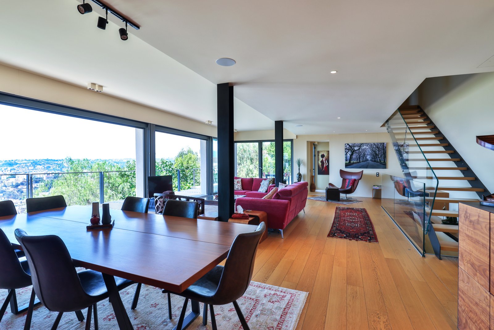 Elle se compose d’un vaste séjour lumineux avec sa cuisine ouverte équipée et aménagée, quatre chambres et quatre salles de bains ainsi qu’un appartement d’invités indépendant de type 2 pièces.