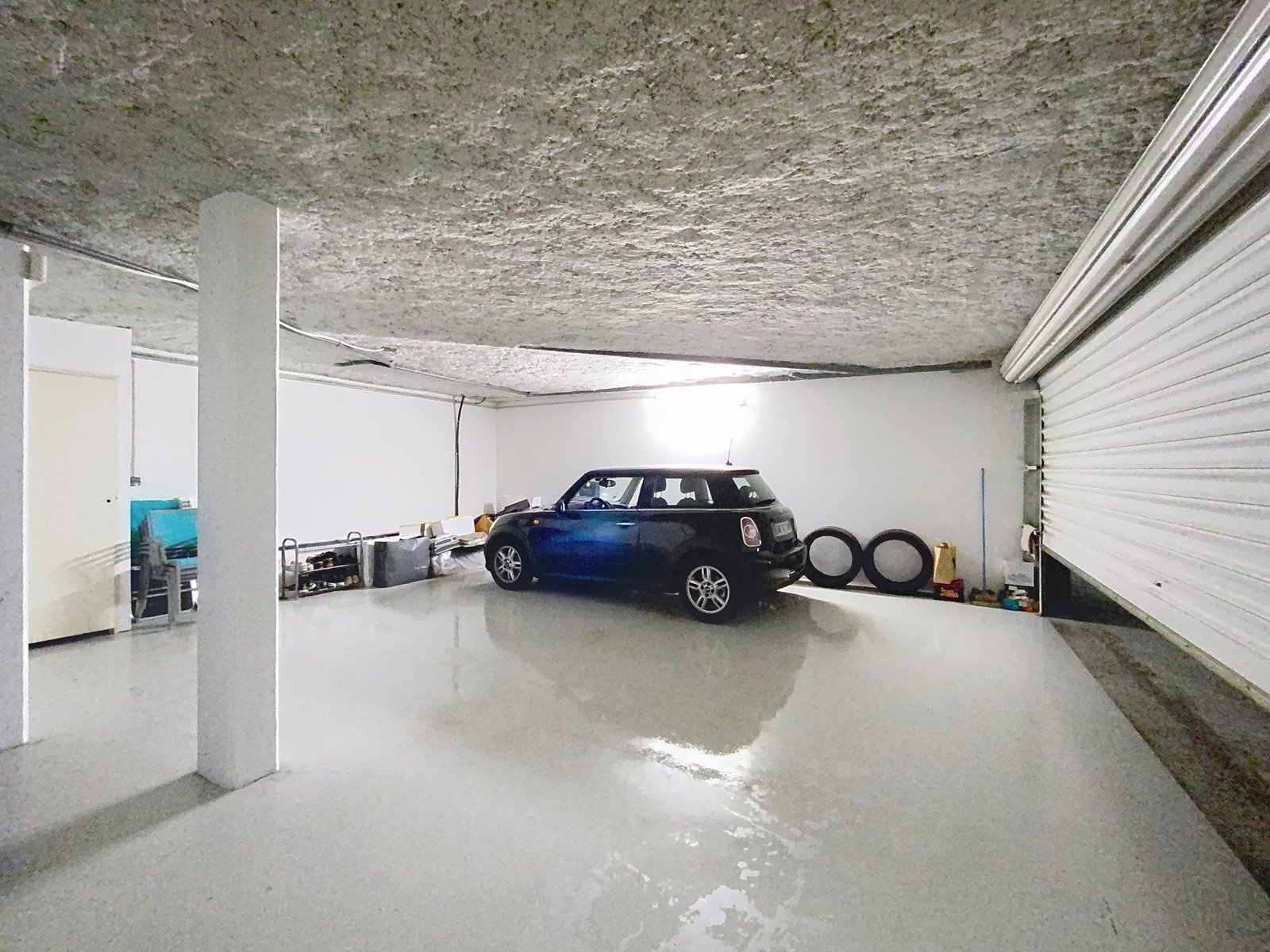 En descendant à l’étage inférieur, on accède à un spacieux garage de 58 m² pouvant accueillir deux à trois voitures.