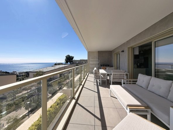 Cet appartement permet de vivre dans un environnement très calme, avec une belle vue mer, et combine les meilleurs atouts d’une maison individuelle et d’un appartement en résidence.