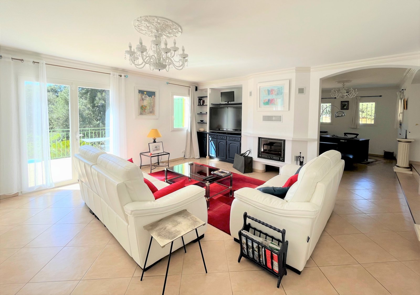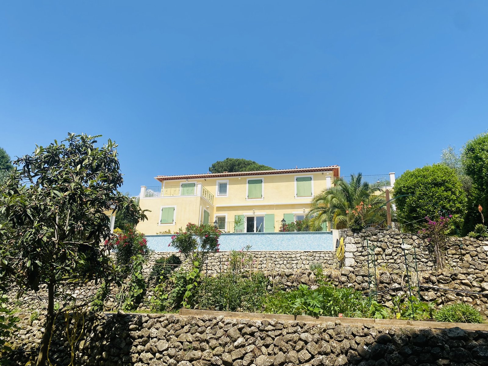 Dans un quartier prisé de VENCE, cette belle construction de 215 m2 environ est située dans un endroit intimiste. Cette villa est exposée SUD OUEST avec un terrain de 2067 m2 complanté d’arbres fruitiers. Une somptueuse entrée domine l’espace vie: salon, salle à manger avec cheminée à foyer fermé, une cuisine équipée (ouverte sur une terrasse abritée), un bureau.WC invités.Une chambre parentale avec sa salle d’eau et wc. Une buanderie avec une douche et wc, un garage entièrement carrelé. L’accés à l’étage se fait par un bel escalier en fer forgé qui nous mène sur un palier avec possibilité d’organiser un espace bureau. Une chambre avec salle de bains et wc, deux autres chambres avec chacune son solarium et sa salle d’eau avec wc. En entresol, un immense espace pouvant être aménagé en HOME CINEMA ou bien salle de sport. Deux chambres avec salles d’eau. En façade, une large et grande terrasse surplombant la piscine et son pool house. Nombreuses places de parking complètent cet ensemble sur la façade NORD -EST. L’assainissement est au TOUT A L’EGOUT